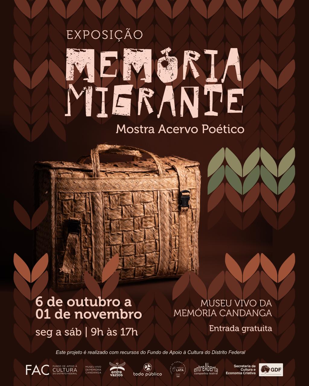 De 6 de outubro a 1º de novembro, o Museu Vivo da Memória Candanga recebe a Memória Migrante – Mostra Acervo Poético, um mergulho afetivo nas histórias de mulheres migrantes que ajudaram a construir Brasília. Em sintonia com o Dia Internacional da Pessoa Idosa, celebrado em 1º de outubro, a programação acessível e convidativa combina exposição sensorial com mais de 80 relatos em vídeo, o minidocumentário “Barraca de Memórias”, o espetáculo “Carrego O Que Posso, Faço Quintal Onde Dá”, além de vivências, oficinas de tricô, rodas de conversa e visitas mediadas com LIBRAS e audiodescrição.