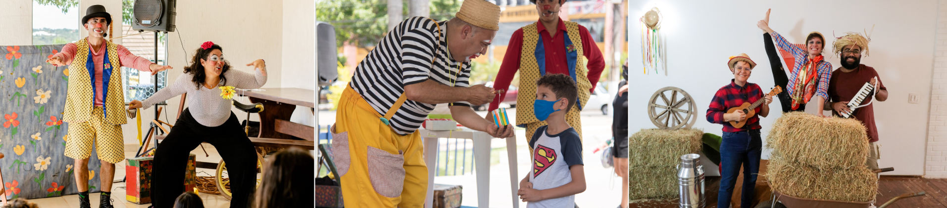 Projeto resgata as brincadeiras de antigamente com espetáculos de palhaços, oficinas de brinquedos recicláveis e contação de histórias